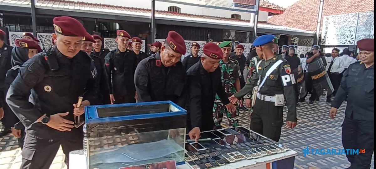 Ngawi, tagarjatim.id – Petugas Lembaga Pemasyarakatan (Lapas) kelas II B Ngawi memusnahkan puluhan handphone hasil razia di blok kamar warga binaan, selasa (23/12/2025).
