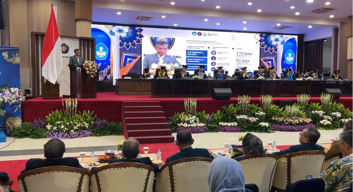 Dalam orasinya, Yassierli menyoroti perubahan lanskap ketenagakerjaan yang berlangsung sangat cepat akibat disrupsi teknologi dan digitalisasi. Menurutnya, kondisi tersebut menuntut perguruan tinggi untuk terus berbenah agar mampu menghasilkan lulusan yang siap kerja, relevan dengan kebutuhan industri, serta mampu menekan kesenjangan antara keterampilan lulusan dan permintaan pasar kerja.