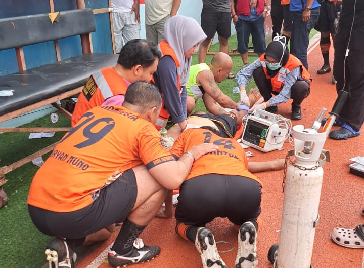 Setelah babak pertama berakhir, Kuncoro memilih beristirahat di bangku cadangan. Namun, suasana mendadak berubah ketika ia tiba-tiba terjatuh dan tidak sadarkan diri. Pertandingan langsung dihentikan, sementara tim medis melakukan resusitasi jantung paru (RJP) di lokasi sebelum membawanya ke rumah sakit menggunakan ambulans.