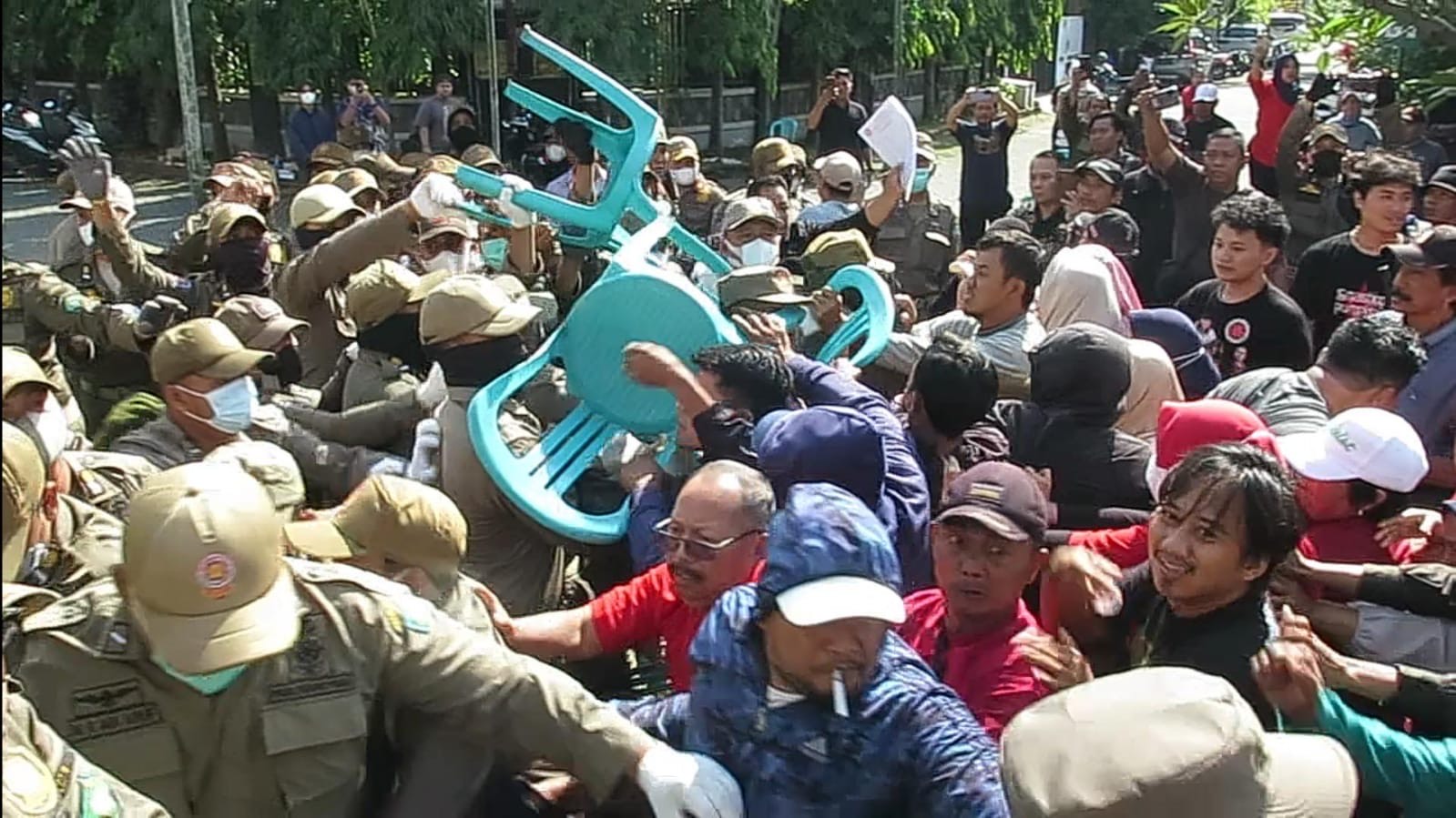 “Kepala saya terluka berdarah, pipi saya dipukul. Saya juga ditarik oleh petugas. Ada warga dari Mutiara City yang ikut memukul. Saya bukan provokator, hanya warga yang menolak pembongkaran,” tutur Bagus.