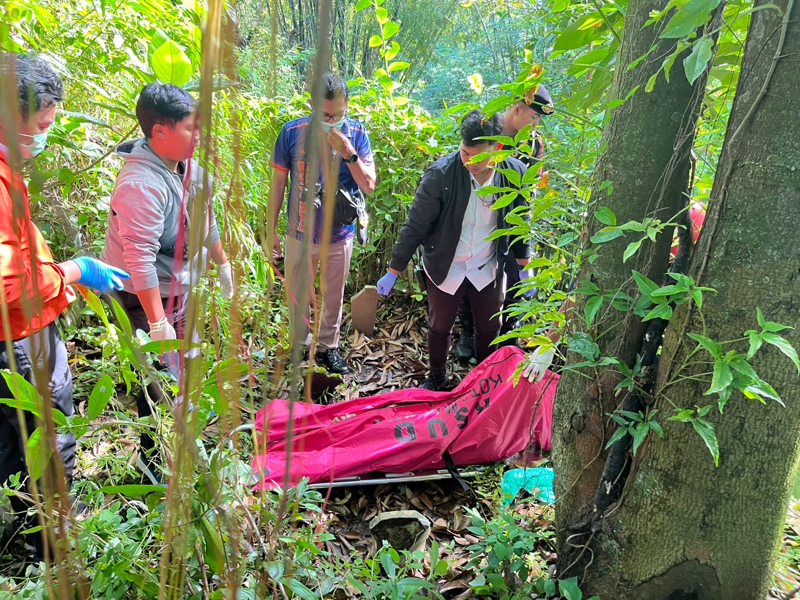 “Korban mengenakan pakaian lengkap, yaitu kaos oblong warna abu-abu dan memakai celana kain warna hitam. Selain itu, tidak ditemukan kartu identitas apapun pada korban,” terangnya.