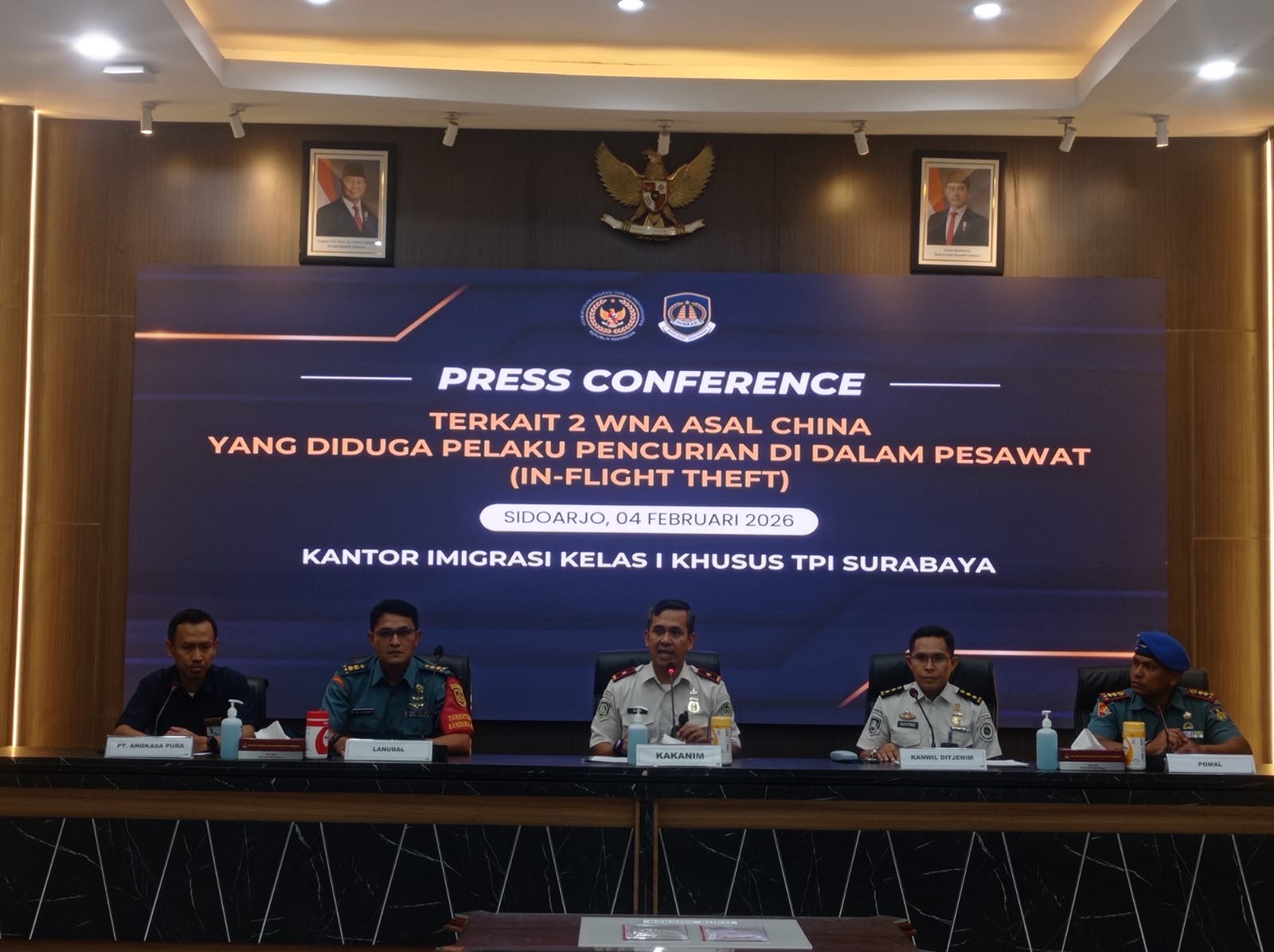 Sidoarjo, Tagarjatim.id – Dua Warga Negara Asing (WNA) asal China diamankan petugas gabungan dari Kantor Imigrasi Kelas I Khusus TPI Surabaya bersama pihak bandara, PT Angkasa Pura, Lanudal TNI AL, Satgas Bandara Juanda, maskapai penerbangan, serta unsur pengamanan lainnya. Keduanya diduga melakukan tindak pencurian di dalam pesawat Citilink nomor penerbangan QG716 rute Jakarta (CGK)–Surabaya (SUB).